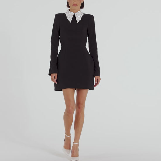 Tauche ein in Definition mit dem schwarzen ALISHA Kleid. Aus unserem Signature Crêpe Stoff gefertigt, zaubert die ALISHA ein markantes Silhouette mit scharfen, gepolsterten Schultern, einer taillierten Passform und einem Tulpen Minirock. Der kontrastierende Blumenkragen setzt einen auffälligen Akzent bei diesem kleinen Schwarzen, während Schlitze an den Ärmeln für einen modernen Twist sorgen. Abgerundet wird das Ganze mit einem verdeckten Reißverschluss hinten für einen perfekten Sitz.